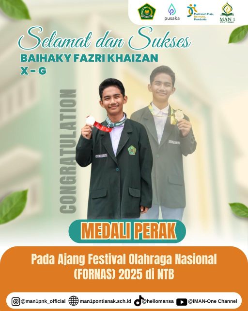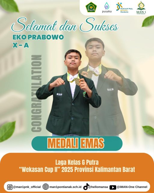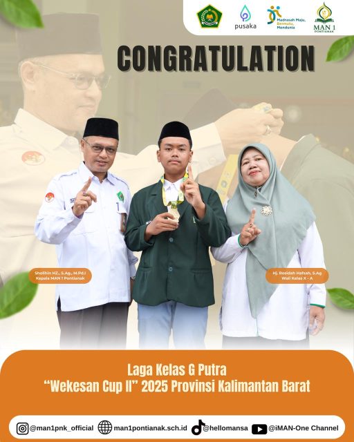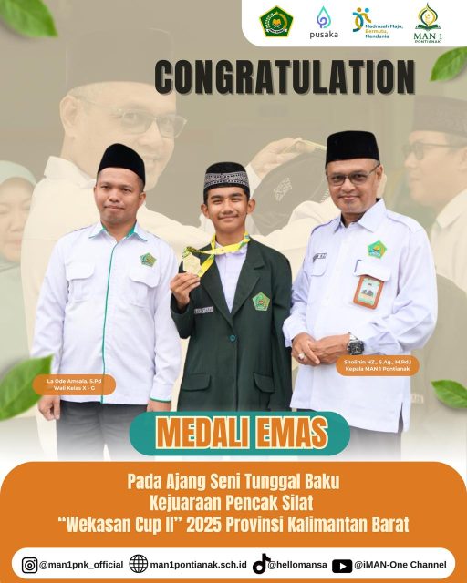 Pontianak, 12 September 2025 – MAN 1 Pontianak kembali menorehkan prestasi gemilang melalui para siswanya yang berhasil mengharumkan nama madrasah di tingkat nasional maupun daerah.